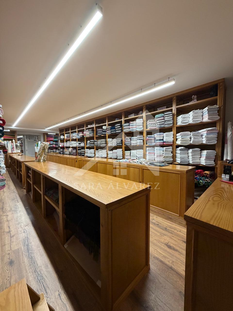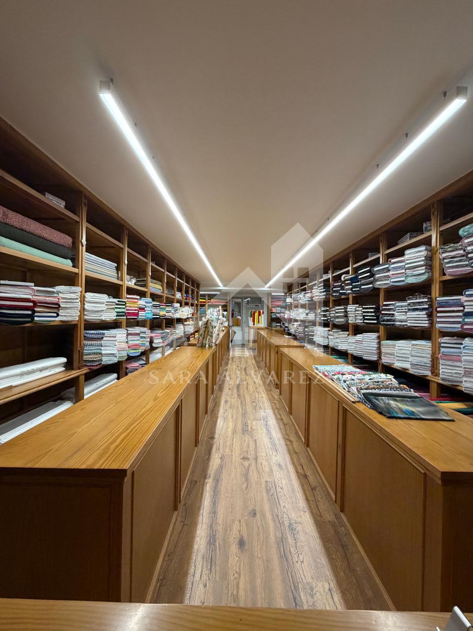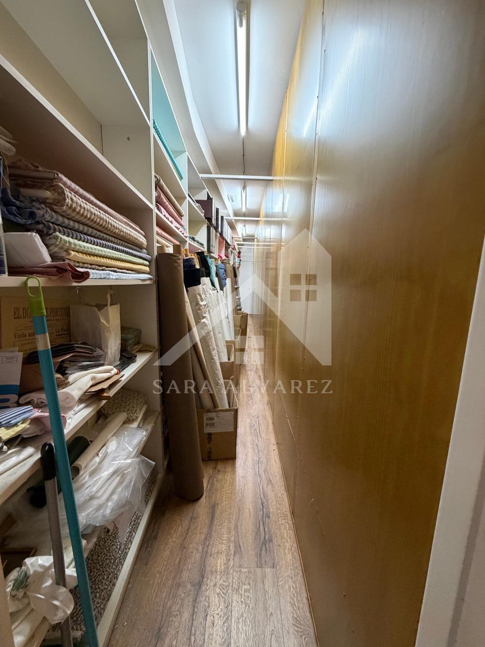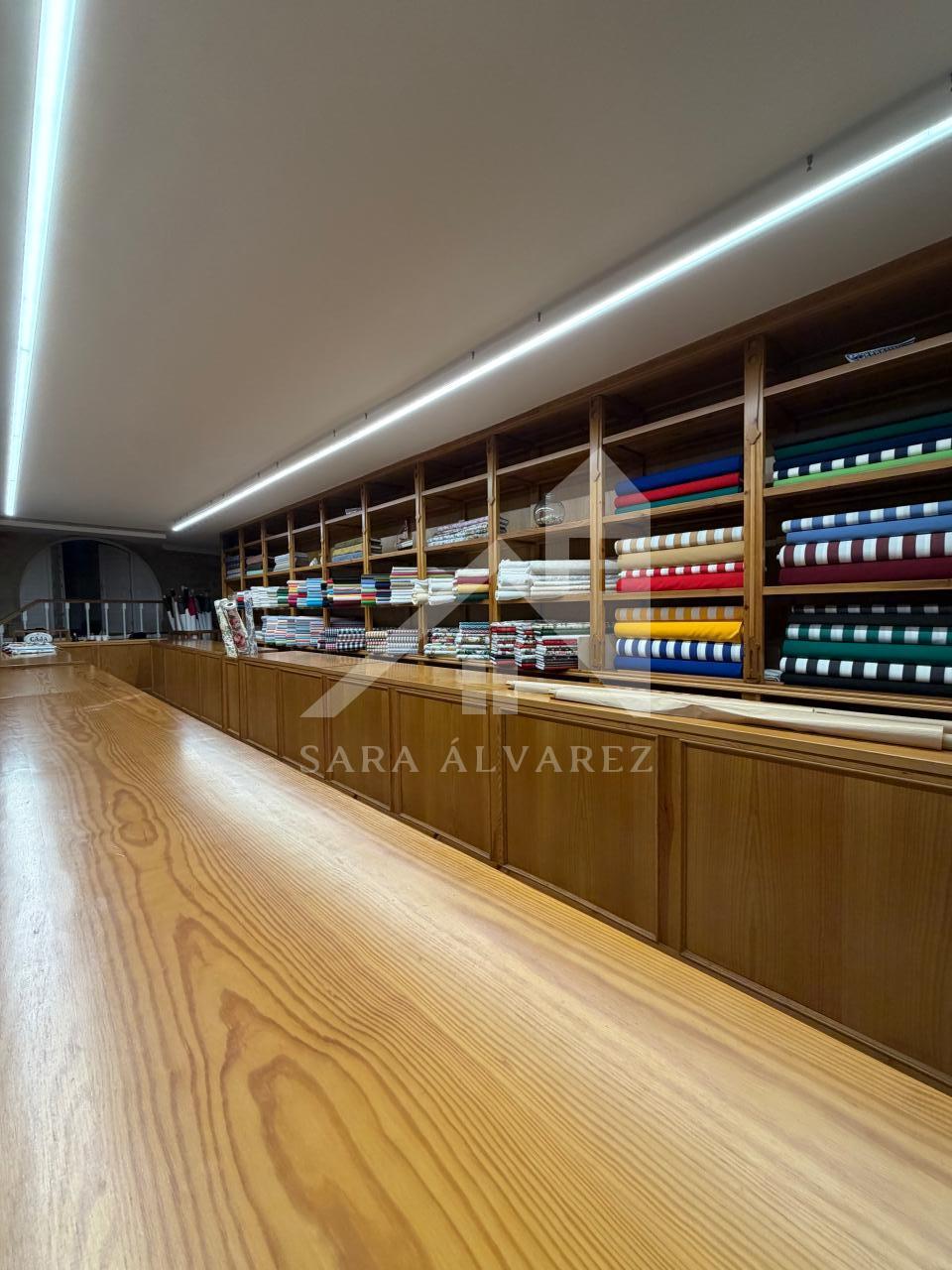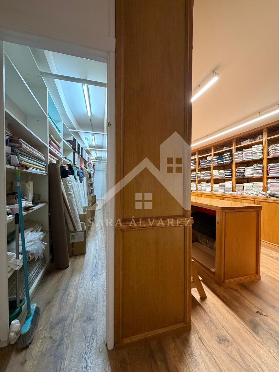 Cuenta con una gran sala diáfana y dispone, a lo largo de casi todo uno de los laterales, de una división para zona de almacenamiento con posibilidad de unificarse a la zona principal generando un mayor espacio de atención al público. Al fondo del local cuenta con otro anexo, a una cota superior, al que se accede a través de unas escaleras de madera y un arco con unas puertas de madera lacadas en blanca haciendo juego con la barandilla. En este espacio es donde se ubica otro almacén y, un cuarto de baño.